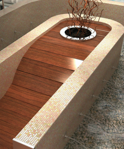 Wszystkie elementy do budowy SPA są wykonane z XPS . Dodatkowo oferujemy mozaiki szklane REVIGLASS doskonale nadające się do wykończenia strefy SPA ,łaźni , basenów.