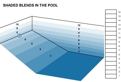 Na poniższym rysunku przedstawiamy układ odcieni mozaiki w basenie o pochylonym dnie, do obliczania poszczególnych mieszanek.